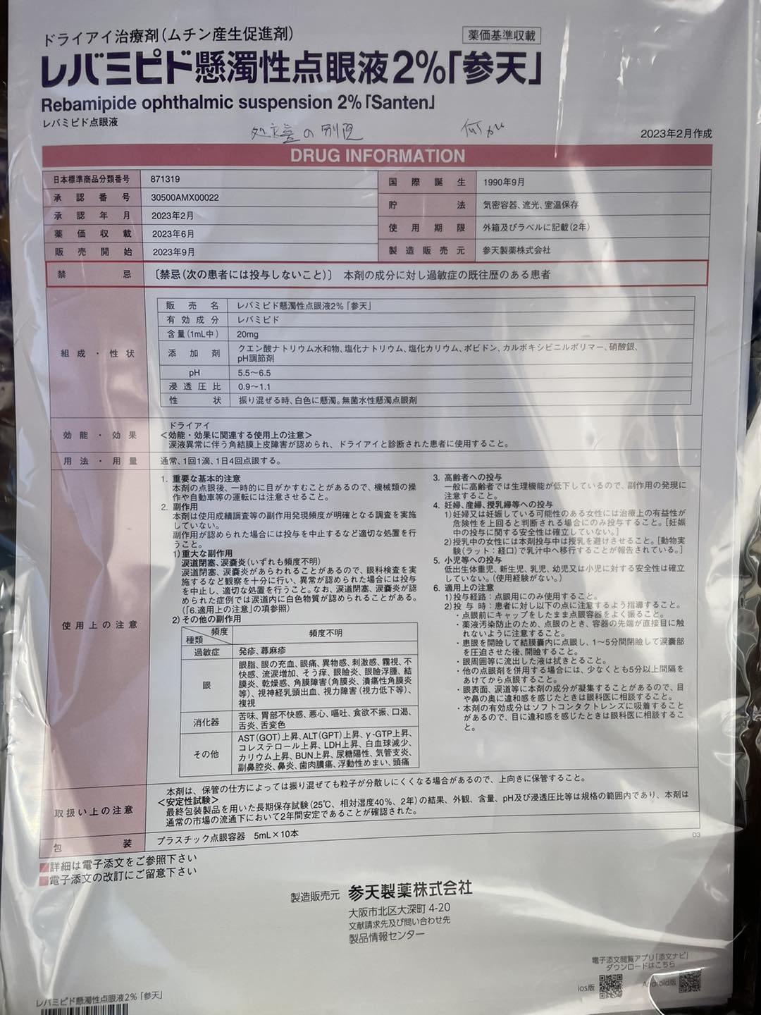 レバミピド懸濁性点眼液2%「参天」の勉強会を行いました。